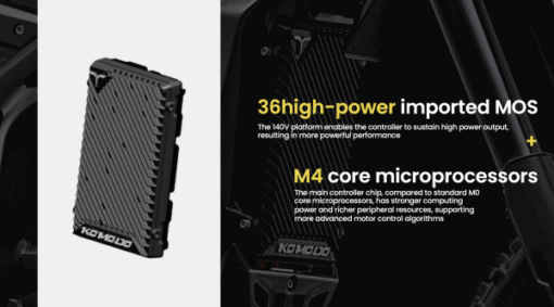 The main controller chip of the Talaria Komodo, compared to standard MO core microprocessors, has stronger computing power and richer peripheral resources, supporting more advanced motor control algorithms.